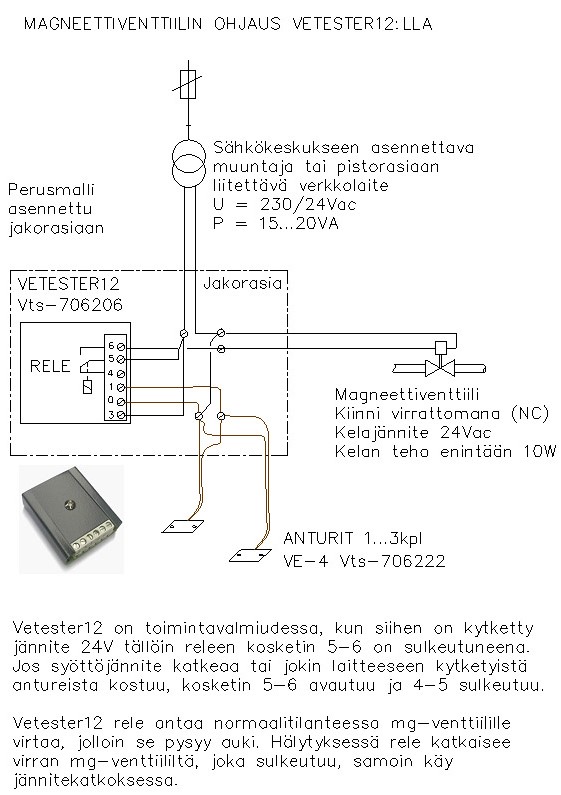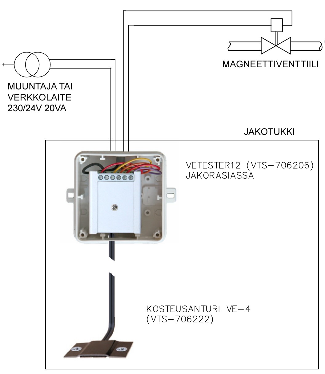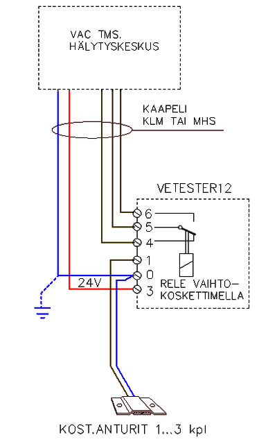 Kun jokin Vetesteriin kytketty anturi havaitsee kosteutta,