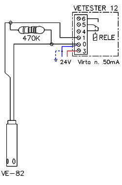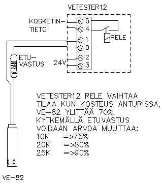 anturin, VE-82 havaitsema kosteus kasvaa, saadaan Vetester12:n